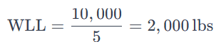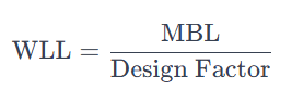WLL is calculated based on the Minimum Breaking Load (MBL) of the equipment. The formula is: